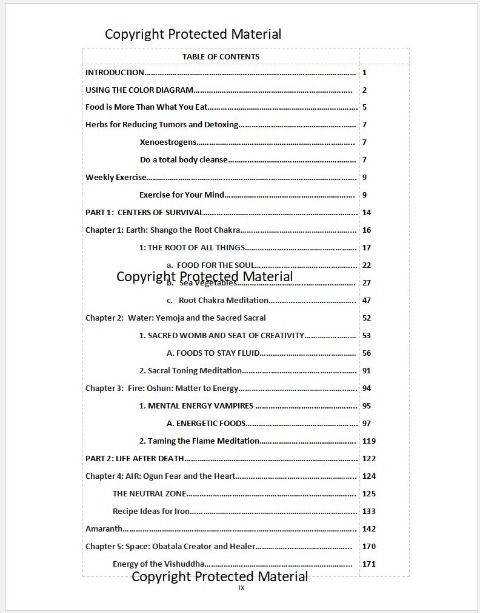 The energy of the Orishas is throughout the pages as I heal myself through the chakras.